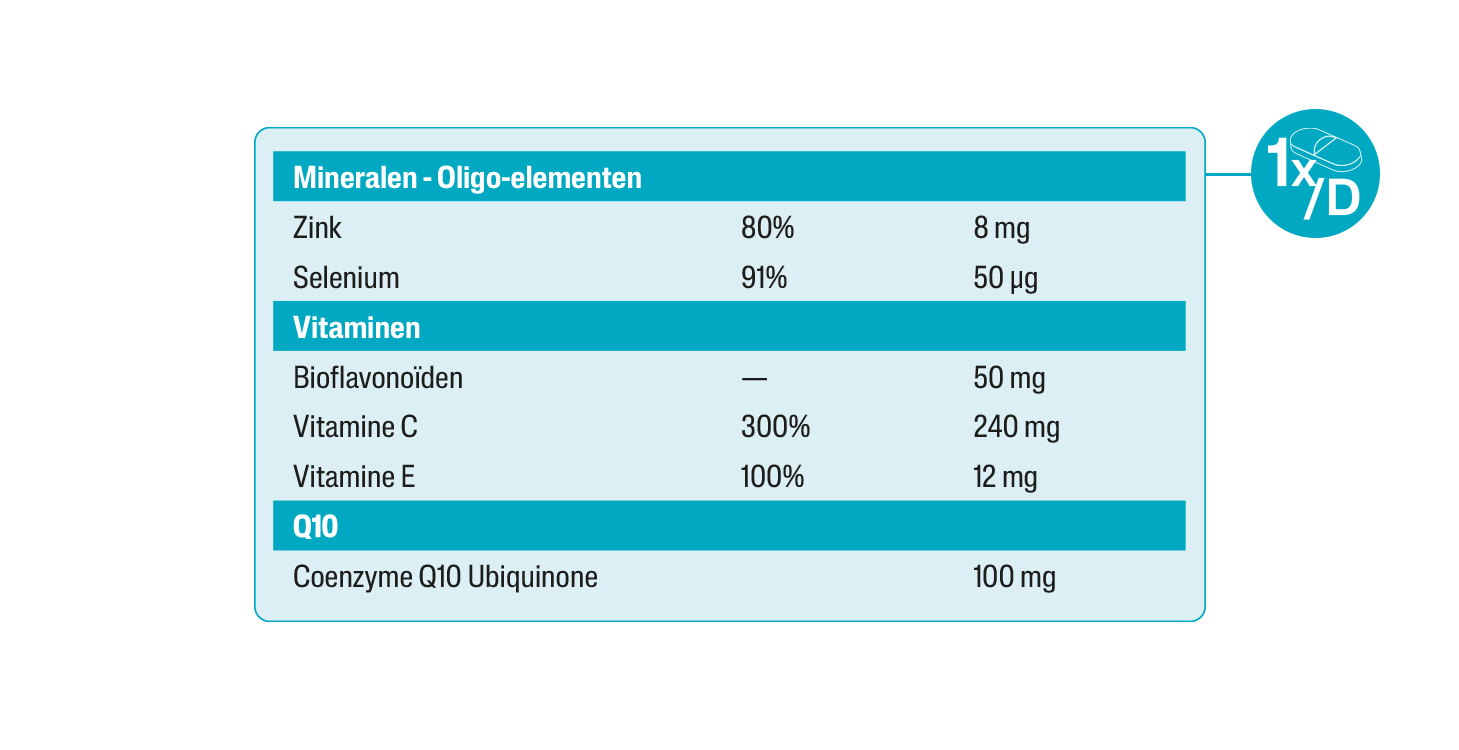 Draagt bij tot de normale werking van het immuunsysteem dankzij vitamine C, selenium en zink.